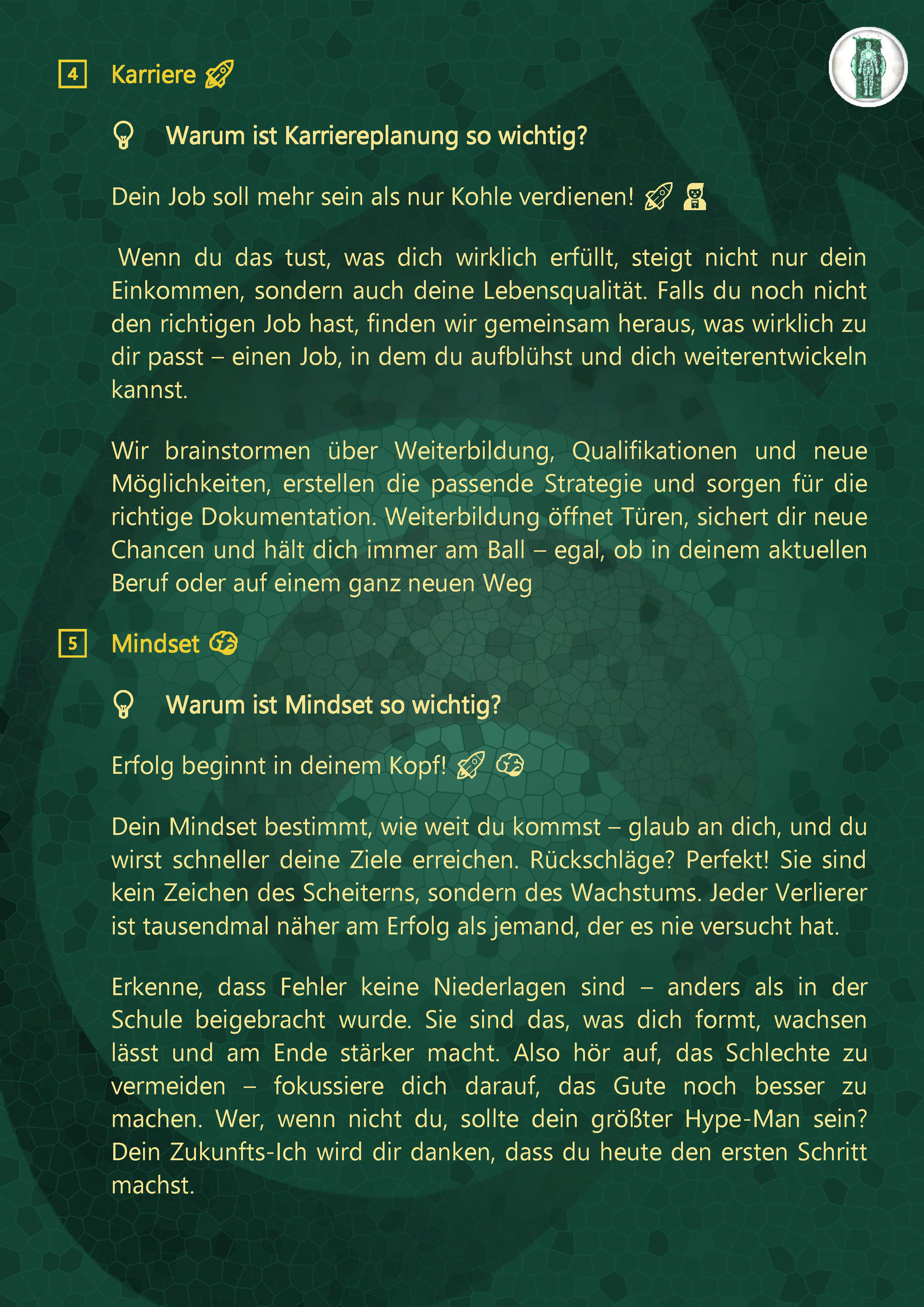 berufliche Perspektiven oder die Stärkung eures mentalen Wohlbefindens geht
