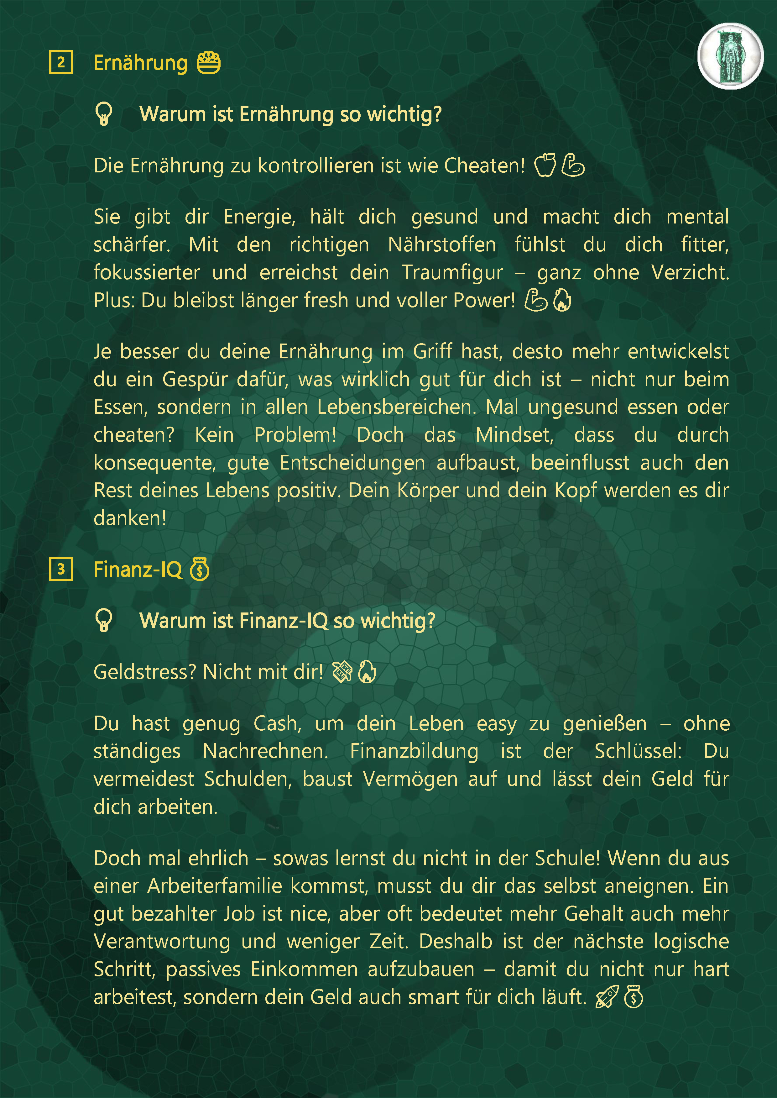 Finanz-IQ, Sport, Ernährung, Karriere und Mindset.